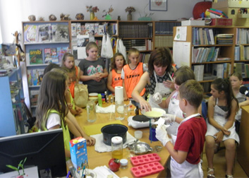 Praktični dio započeo je izradom sapuna. Osnova za izradu sapuna je dječji sapun ili glicerinska baza koja se treba lagano otopiti. Zatim se dodaju boje, bazno ulje, eterična ulja i cvjetni dodaci, kao što su sušene latice nevena ili sušeni cvijet lavande. Nako što se sve to prožme, masa se ulijeva u kalupe i stavlja sušiti. Drugi dio radionice protekao je u izradi balzama za usne. Na umjerenoj temperaturi otopi se pčelinji vosak, dodaje bazno i eterično ulje. I prije nego što se masa stvrdne ulijeva se u posudicu. Kao uspomenu s te radionice svako dijete je dobilo posudicu s labelom i sapun, a knjižnica još miriše na prekrasna eterična ulja.