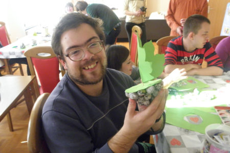 Kao uvod u današnju aktivnost malo smo porazgovarali o grožđu i vinu. Korisnici su istaknuli da je grožđe voće koje treba jesti ali da je vino vrlo opasno jer je alkohol. Budući da je aktivnost osmislila Martina kojoj je danas imendan , počastili smo se svi zajedno sladoledom i kavom, a Martini smo uručili mali znak pažnje koji su izradili naši korisnici.