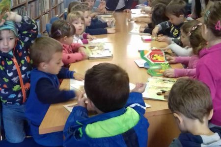 U četvrtak, 19. svibnja 2018., djeca DV Maslačak, skupine Ježići posjetili su Gradsku knjižnicu Đurđevac. Djeca su se upoznala sa smještajem slikovnica i igračaka na dječjem odjelu kao i načinom posudbe. Poseban osvrt bio je na čuvanju i odnosu prema knjigama prilikom posudbe. Inspirirani okruženjem i uz malu pomoć tete Dubravke i tete Branke, djeca su ispričala priču o Vuku i sedmero kozlića.