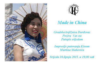 Gradska knjižnica Đurđevac poziva Vas na Putopis srijedom “Impresije putovanja Kinom” Martina Mahovića. Srijeda 10. lipnja 2015. u 19,00 sati.