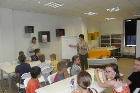 U sklopu Ljeta u knjižnici, u četvrtak, 13. srpnja održana je radionica na francuskom jeziku, a vodila ju je profesorica francuskog jezika Irena Novak. Kroz igru, djeca su na francuskom naučila abecedu, brojeve, boje, dijelove tijela te kako se predstaviti i pozdraviti. Naučila su pjevati popularnu dječju pjesmicu Frere Jacques (Bratec Martin), a na kraju radionice izradili su postere s obilježjima Francuske.