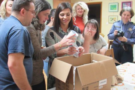 Korisnicima poludnevnog boravka, voditeljica projekta, knjižničarka Martina Makar uručila je promotivni materijal Ruke prijateljstva, kojeg sufinancira Ministarstvo kulture Republike Hrvatske, dok su korisnici iz Bibliokofera i uz knjižničarku Ceciliju Kopljarević odabrali nove naslove za prosinac.