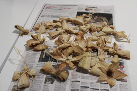 Ukrase za bor danas možemo kupiti u gotovo svakoj trgovini, no naši djedovi i bake nisu imali tu mogućnost već su ukrase izrađivali sami, od onih materijala koje su imali na raspolaganju, a upravo je jedan od tih materijala komušina, prirodni materijal s kojim gđa. Marica Lacković već dugi niz godina izrađuje tradicionalne ukrase.